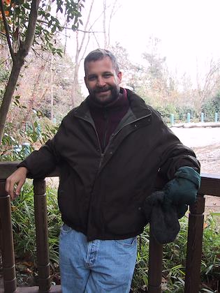 Eric looking cool and studly in front of the elephant area. We're waiting to get into the baby elephant area.