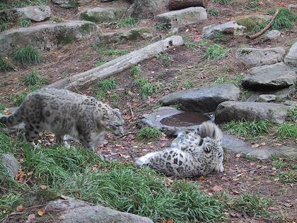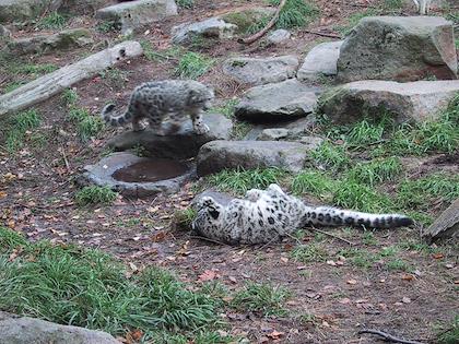 The snow leopards (mother and two young ones) were very playful. About to attack...