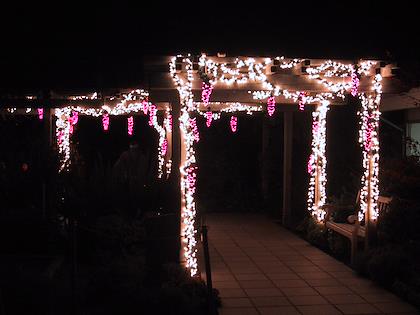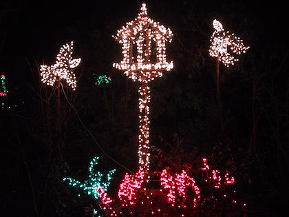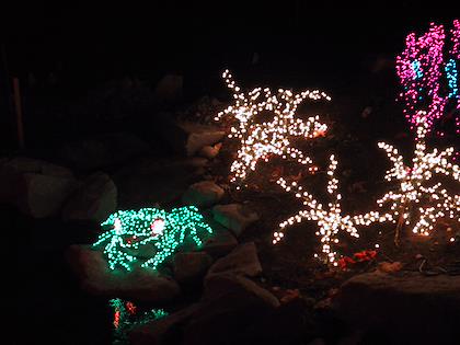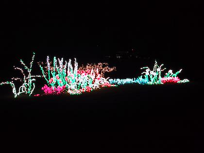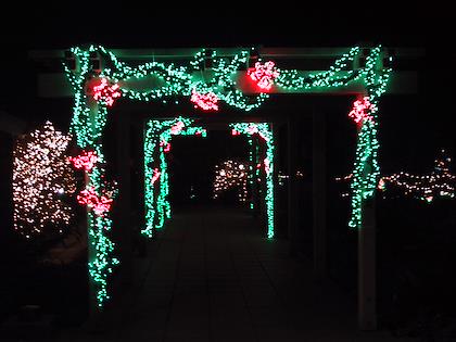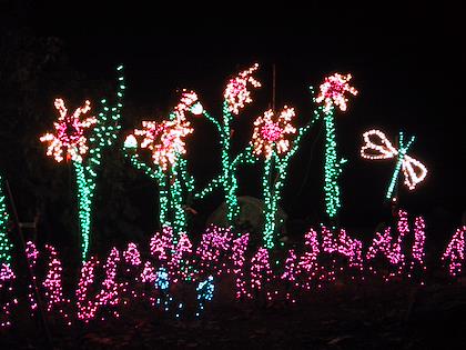 | The Bellevue Botanical garden was brightly lit with fanciful flowered decorations made with colored lights. | |