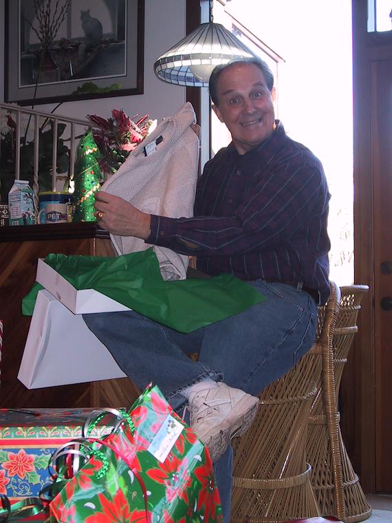 Eric's dad Ken is happy with his sweater