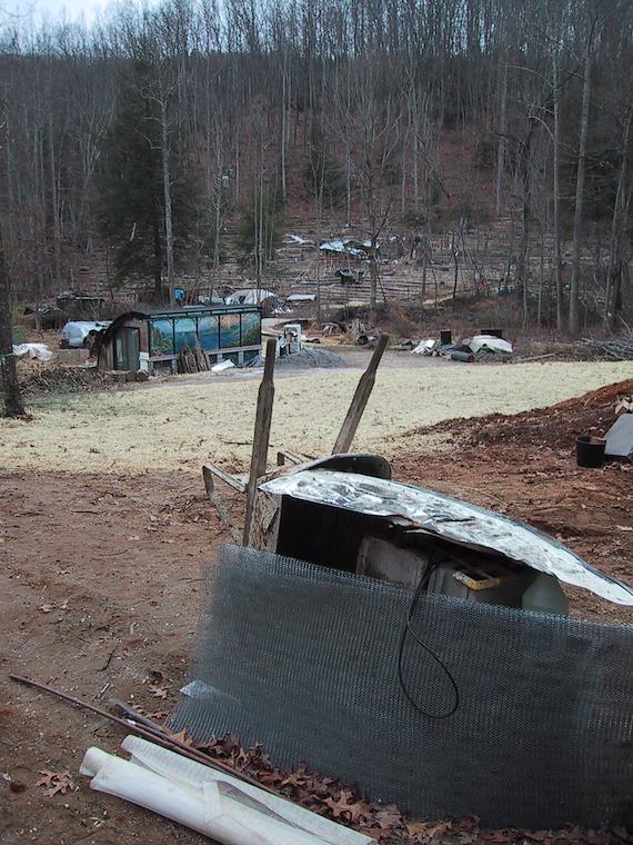 A view of the "tree garden" (in the back) and greenhouse from the homesite.