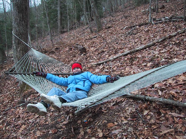 The old Twin Oaks hammock is still there, a little bit worse for the wear
