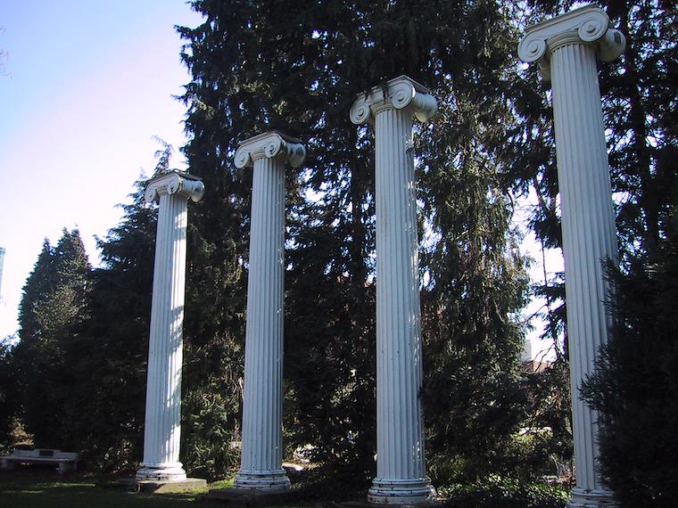 The original pillars brought from downtown Seattle where the University first got it's start in the 1860's.