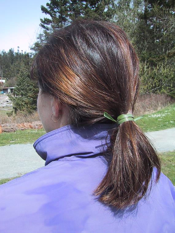 It was a windy day. I didn't have a barrette, so I tied a blade of grass around my hair. It worked, too, for a while.