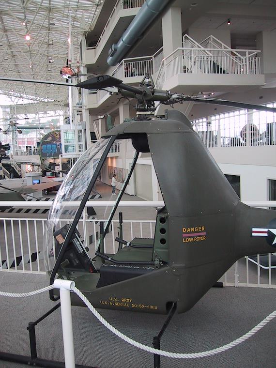 This helicopter has no tail because it is powered by jets on the tips of the propeller!