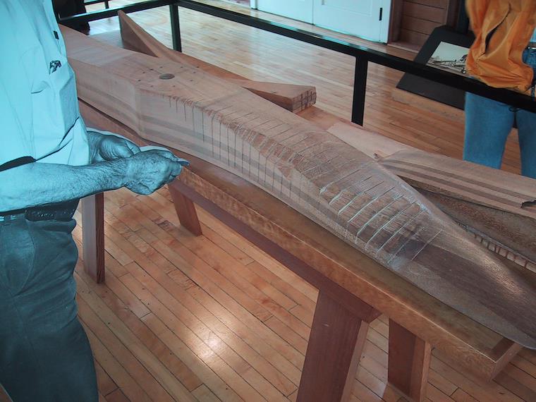 They were carved from wood.