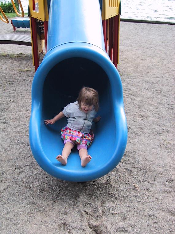 At Chism Beach Park, Hannah had lots of fun playing in the water and going down the slides.