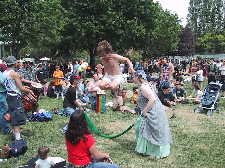 Eric and Sylvia check out the Folklife Festival in Seattle (many hippies) and then have dinner at a Chism Park with The Burds