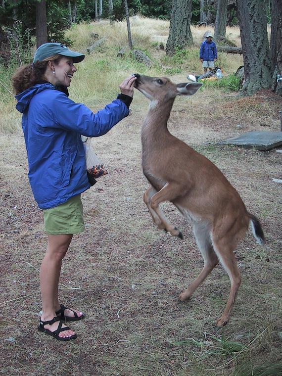 The deer on this island were almost domesticated. They would come right up to you if you had food and literally climb on you trying to get it. Apparently they even get into tents.