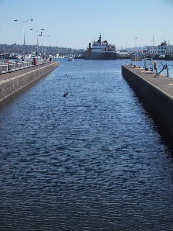 On the way home we went to the Ballard locks. Three salmon are jumping out of the water in this picture!