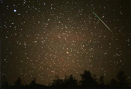 Every once in a while a car would drive up the road we were situated on. Mostly these were other meteor watchers, looking for a good place from which to watch. However, the headlights would overwhelm the exposure.