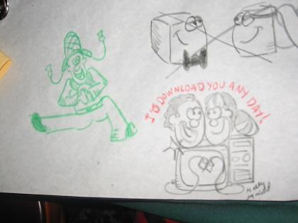 |  | |  | | Kelly drew a cartoon for me on the tablecloth | | Surprise! They'd rented a limo for me, and we went for a drive around town. |