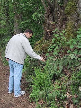 The first place we went to, trying to access the geocache, was a dead end - no trail led from there. There was an interesting cable car thing going over the river, but Eric wouldn't let me try it.