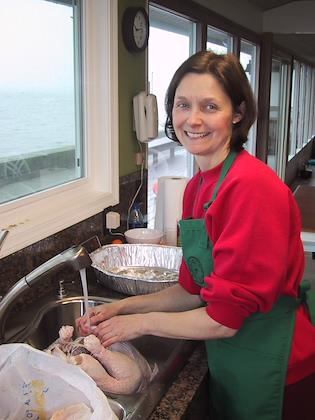 Sue stuffing the turkey.