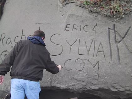 Eric carves our web site onto the cliff as well