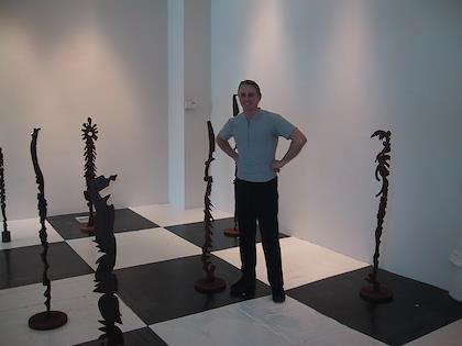 At the Bryan Ohno Gallery, the featured sculptor Brandon Zebold was very friendly, and talked to us about his works.