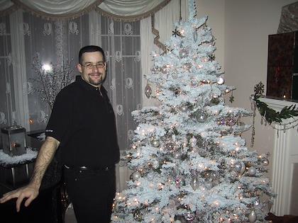 John with the fancy new artificial Christmas tree with built in lightingDinarte cavorting amidst the food with friends