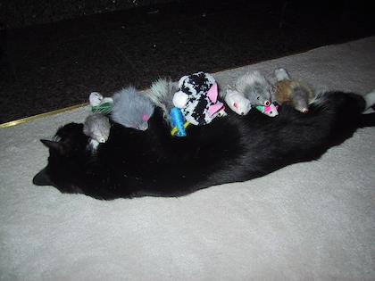 Ramin and DorisEpinine stayed still while Eric positioned all her toys on her.