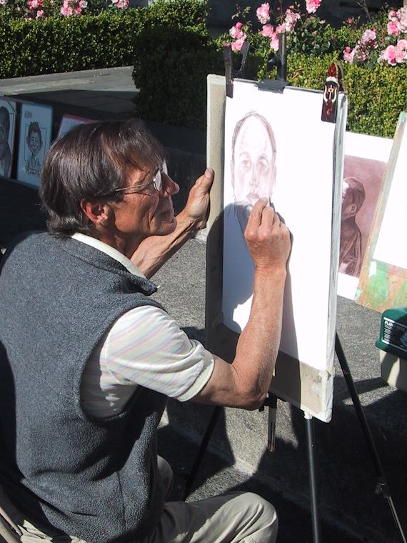 A sidewalk artist drawing his subject. They seemed pretty reasonable - $20 CDN for a decent looking portrait.