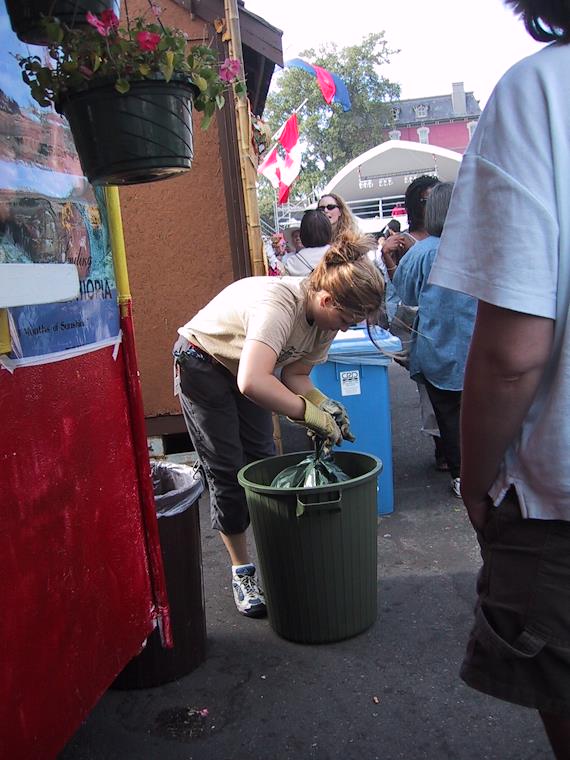 What a waste of time and energy. This woman had just finished sorting out a bag of garbage at a craft festival, fishing out the plastic bottles from the rest of the trash. I imagine the bottles were probably worth about a tenth of a penny.