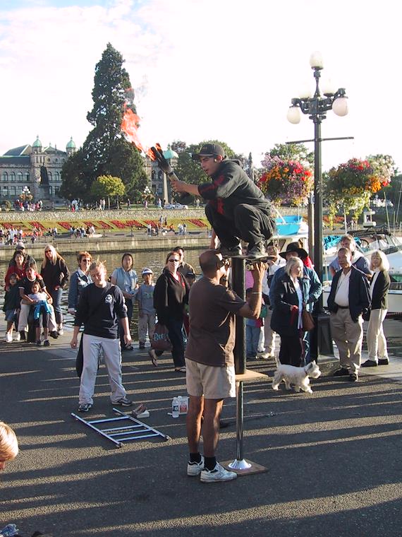 This guy did an act that combined skateboarding, and balancing with juggling torches. Unfortunately the torches had gone out before he got a chance to juggle them.