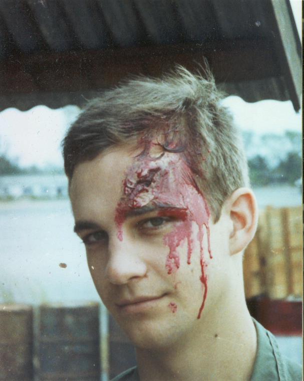I was the first extra to receive makeup on the Air Force set. In my case, evidently a bullet grazed my head!