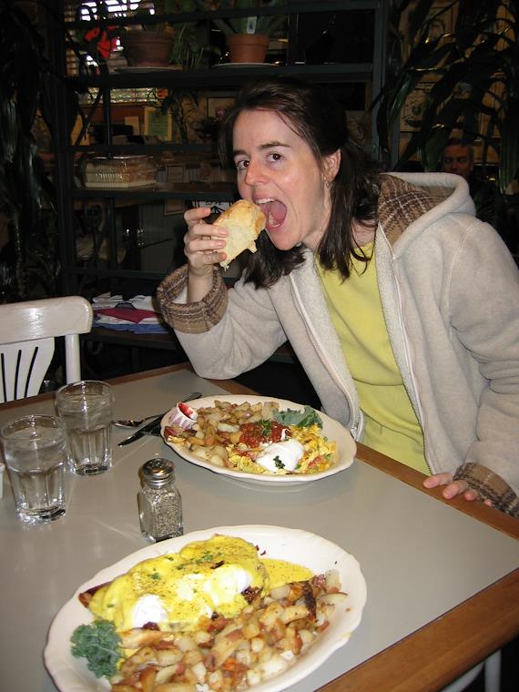 And now - pictures taken with the new camera! Eating breakfast at the Maltby Cafe, where you don't get a plate, you get a trough.