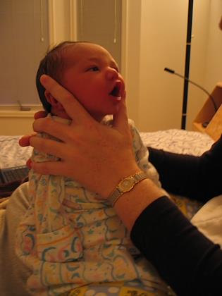 Kenny's first bath! We used a special infant tub that Gary and Grace gave us.