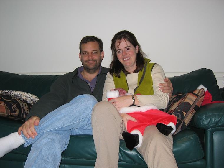 Trying to take a Christmas picture with Kenny in a Santa suit - he hated it