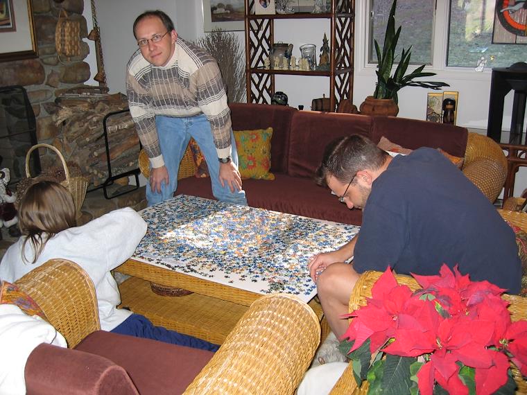 Kevin, Brian and Petra working on a jigsaw puzzle