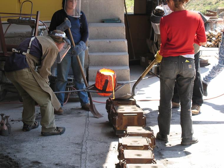 It was fascinating to watch, but also seemed very labor intensive, and unsafe - like something you'd find in the third world. Here they're pouring molten brass into one of the molds.