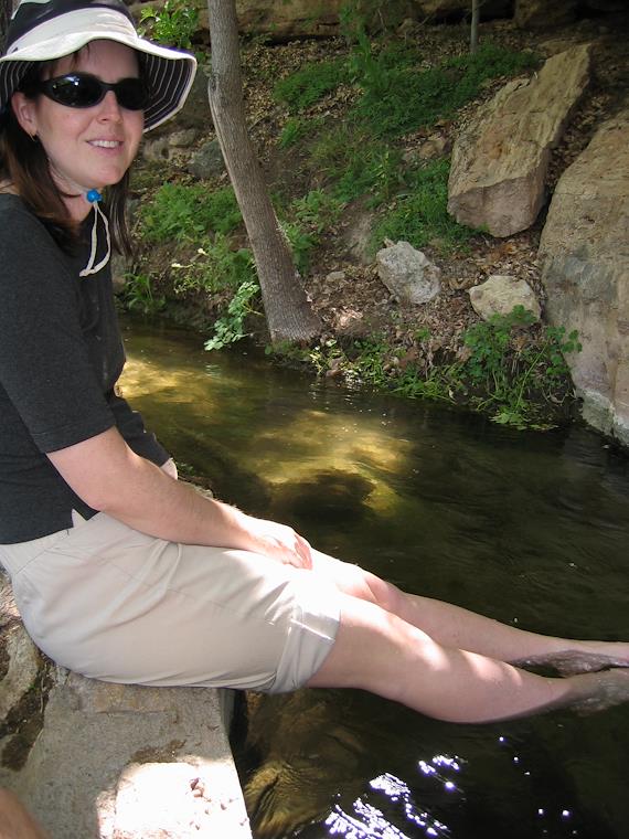 Cooling my feet in a reconstuctred old irrigation ditch, at Montezuma's Well.