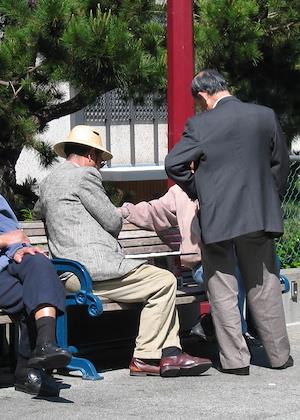 | Transamerica building from Chinatown | | Playing Go at a park in Chinatown |