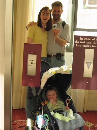 | Shopping for veggies | | Waiting for the elevator in our hotel |