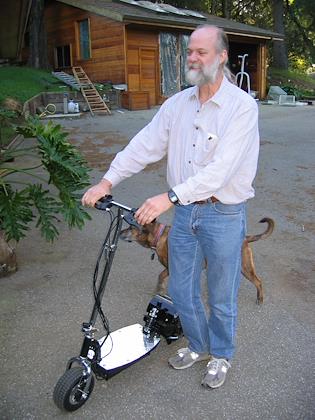 | Visiting Eric's old friend Simon Field and his wife Katherine. Lots of fun toys, gadgets, and animals. | | Simon on the electric scooter |