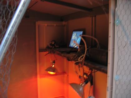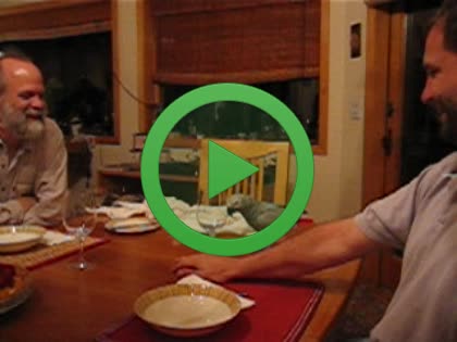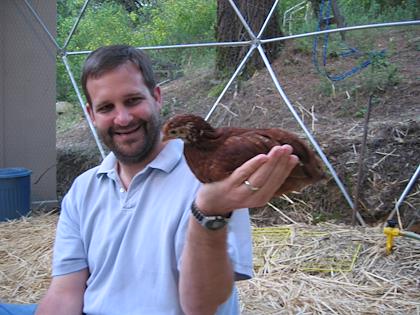 | Visiting the treehouse | | Simon also raises chickens in a geodesic dome. They're very tame! |