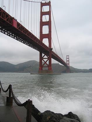 | At Fort Point. We just saw the movie Vertigo, where a woman throws herself into the water right here. | | Some renovations going on at the Golden Gate Bridge |