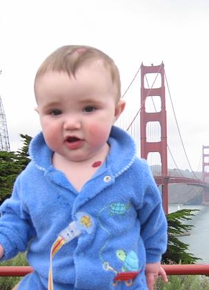 |  | |  | | The Golden Gate Bridge | | Kenny, leaning against the railing at the Golden Gate Bridge. |