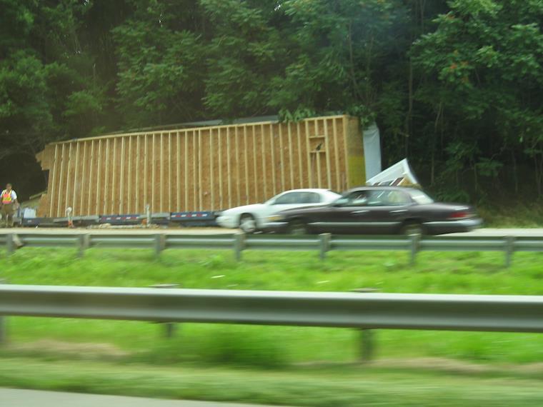 Driving to the Arboretum, we saw a house trailer that had slid off the truck, onto the side of the highway