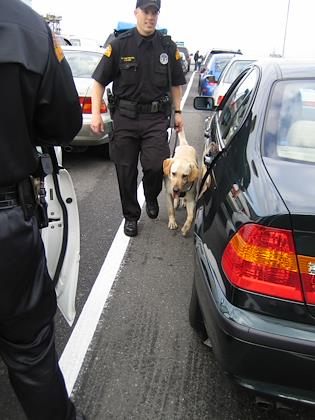 Security was tight on the ferry - strange to see men in black suits with dogsWatching the water go by
