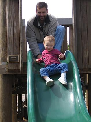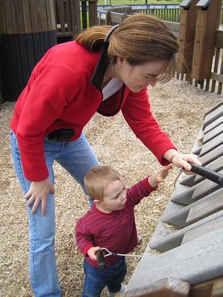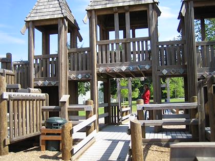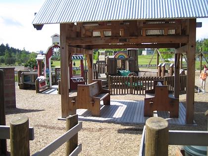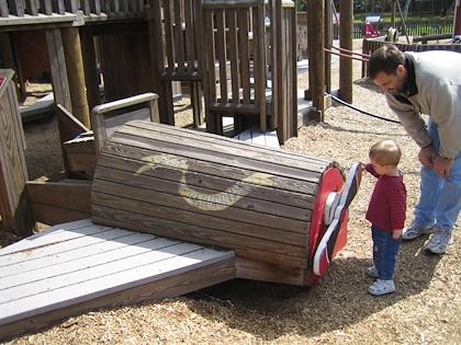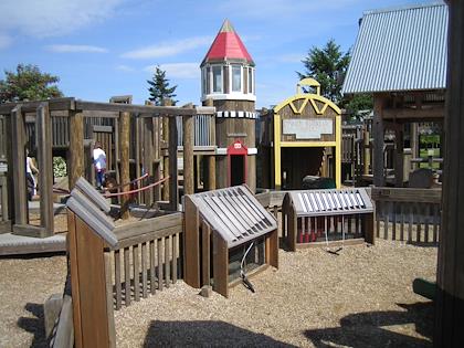 Standing at the ferry windowThe Battle Park playground on Bainbridge Island. This quarter acre was like a playground on steroids! There were all kinds cubbyholes to play hide and seek in, numerous slides and swings, balance toys, musical instruments, towers, tunnels, etc., etc. This spot alone was worth the trip out here!