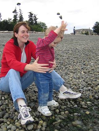 Kenny makes sea lion noisesThrowing rocks at the beach