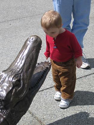 | At the Cougar Mountain Zoo | | We tried to get Kenny to put his head in the alligators mouth, but he wouldn't! |