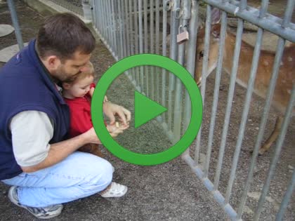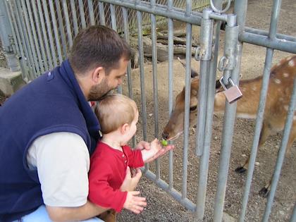 | Playing with a marble-drop toy | | Feeding the deer |