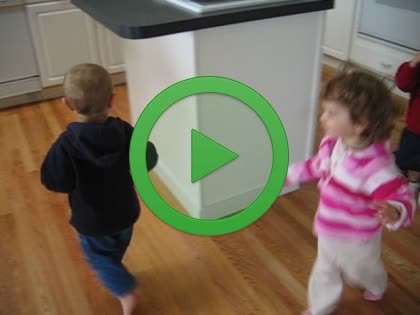 | Kenny riding his tricycle | | Playing chase in the kitchen with Benji and Marina |