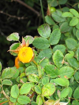 |  | |  | | | I saw lots of this bright orange fungus on the buds of the wild roses |