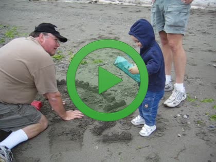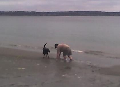 | Terry building a sand castle for Kenny | | Eric skipping a rock |