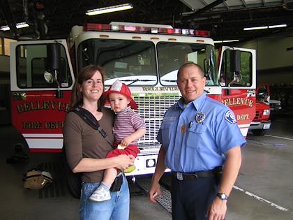 |  | |  | | Kenny and Rochelle in Gabriele's basket | | Kenny and I got to tour the Bellevue Fire Stations through Mother's and More |