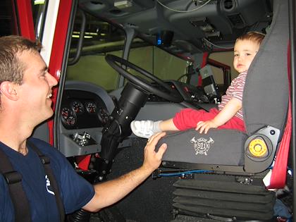 |  | | | | Kenny got to sit in the drivers seat of the fire truck | | | | | |