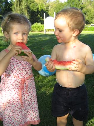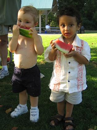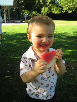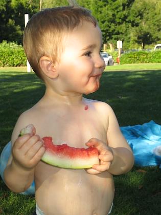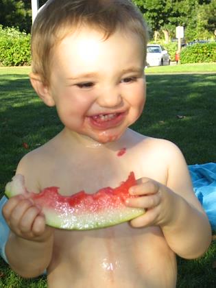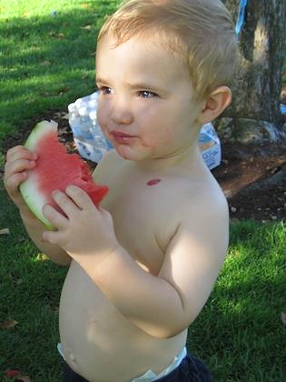 Kenny had lots of fun eating watermelon